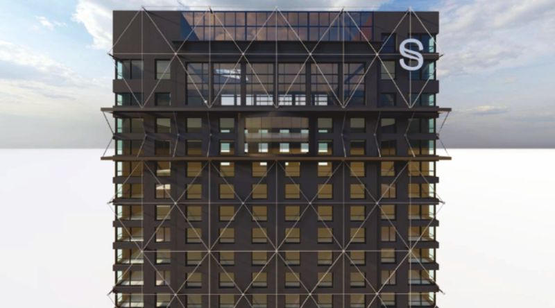 Actualmente estamos trabajando en una fachada paraviento para el mismo edificio dimensiones 24 metros de largo y 5.5 metros de altura suspendida con una viga reticulada confeccionada con perfileria de hierro galvanizado al caliente, esta fachada será fabricada con vidrios fotovoltaicos suministrado por la empresa ONIX (España).